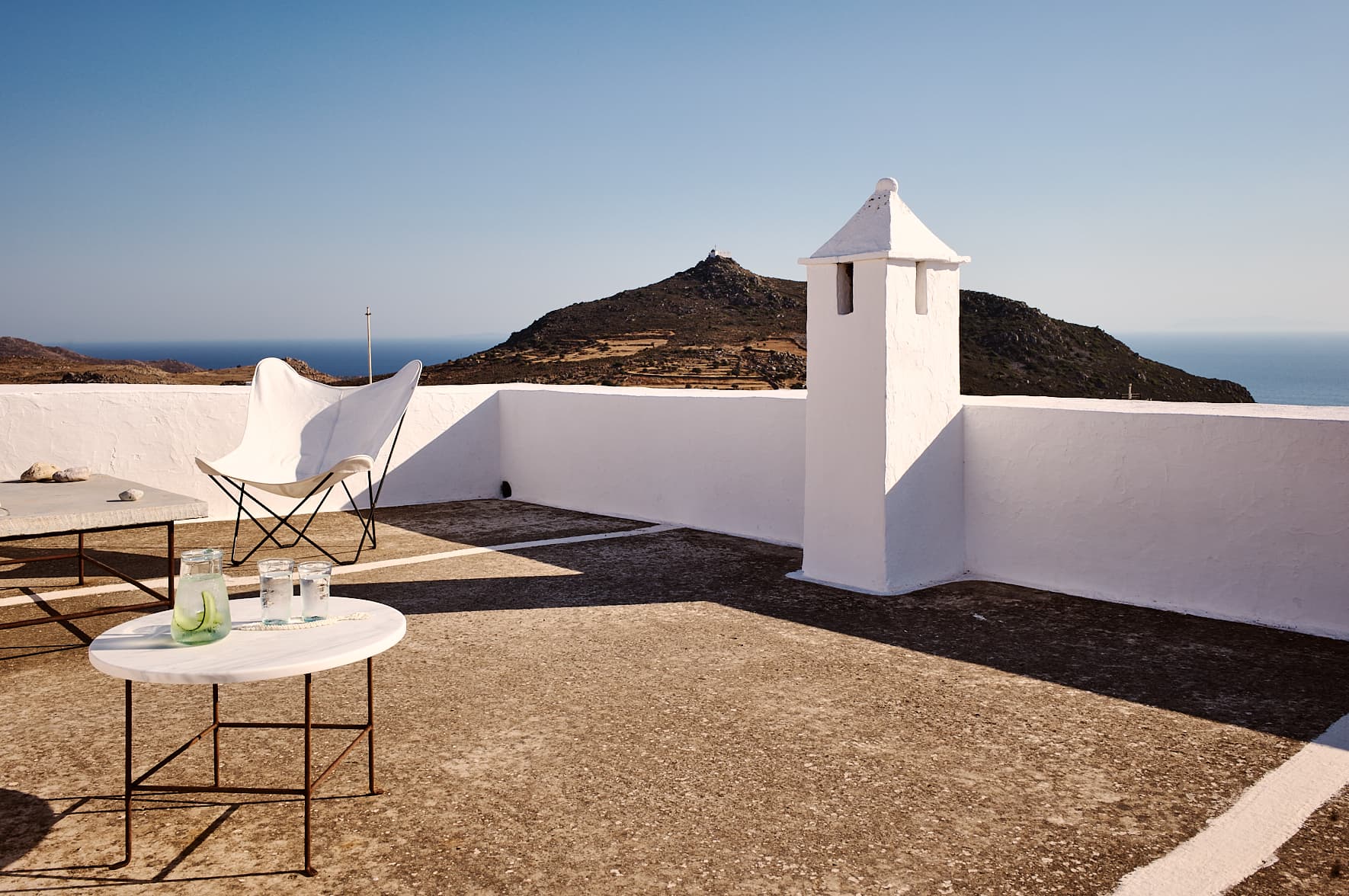 Au détour d’une ruelle blanche de Chora, la paisible capitale de Patmos, se trouve Pagostas, une élégante maison d’hôtes de trois chambres qui se cache derrière un portail discret et dont la cour embaume le jasmin. Bâtie en 1597 par Parthenios Pagostas, abbé du monastère voisin de Zoodoxos Pigi, la bâtisse appartient encore à l’Église. Restaurée avec soin par Leda Athanassopoulou, elle a retrouvé sa vocation première qui est d'accueillir les voyageurs dans une atmosphère lumineuse et apaisée. Leda, architecte et enfant de Patmos, a travaillé main dans la main avec les artisans de l’île pour préserver les volumes, les pierres d’origine et les savoir-faire traditionnels. À l’intérieur, le mobilier mêle antiquités patmiennes, créations sur-mesure et objets contemporains. Pensée comme une maison à vivre, Pagostas reflète la sensibilité de ses propriétaires, Maria Lemos et Gregoris Kambouroglou, entre héritage spirituel et art de vivre méditerranéen. Un lieu à part, suspendu entre passé et présent, où le temps semble s’être arrêté.